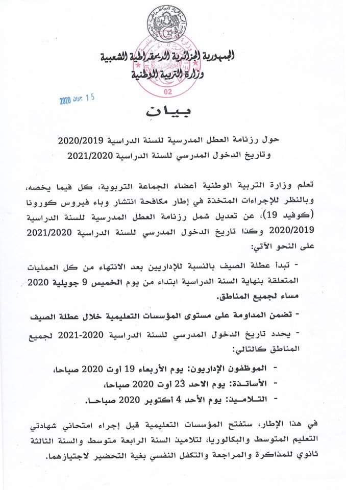 تاريخ الدخول المدرسي للسنة الدراسية 2020 2021