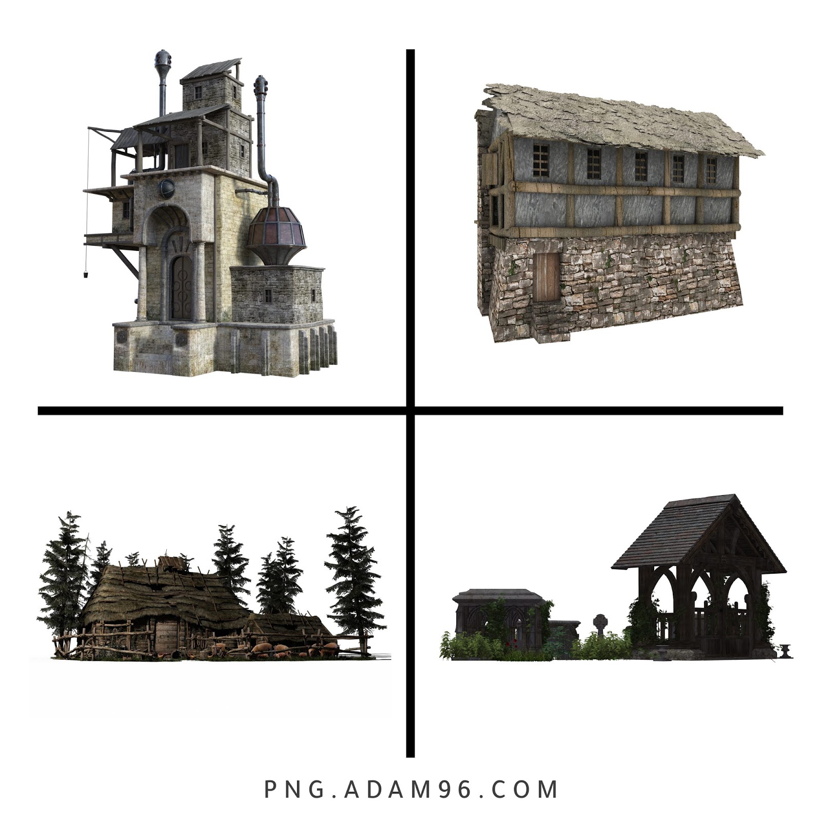 تحميل مجموعة منازل قديمة بصيغة Png للتصميم تحميل صور Png
