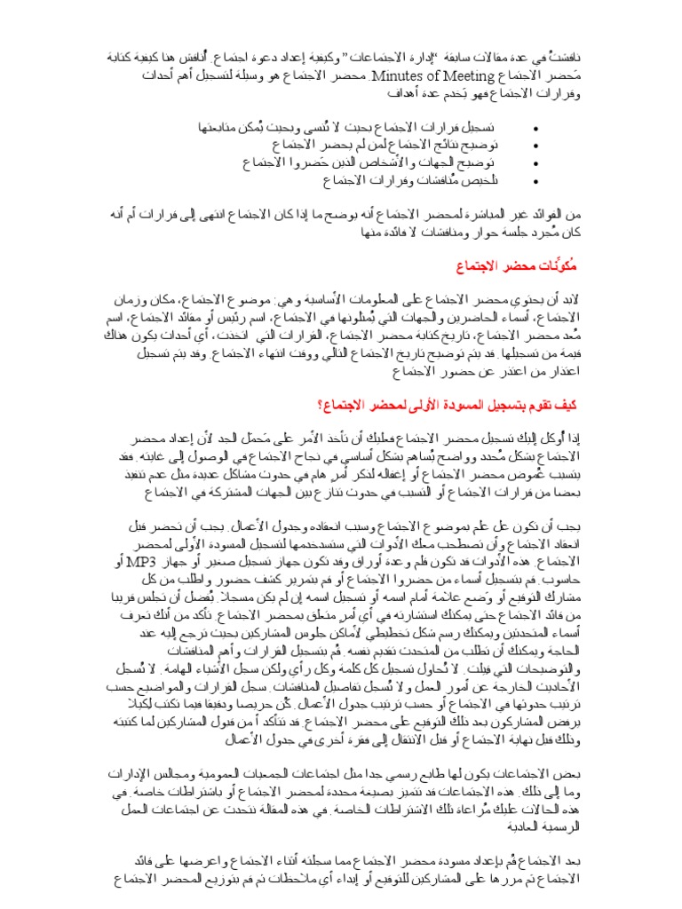 محضر اجتماع Doc