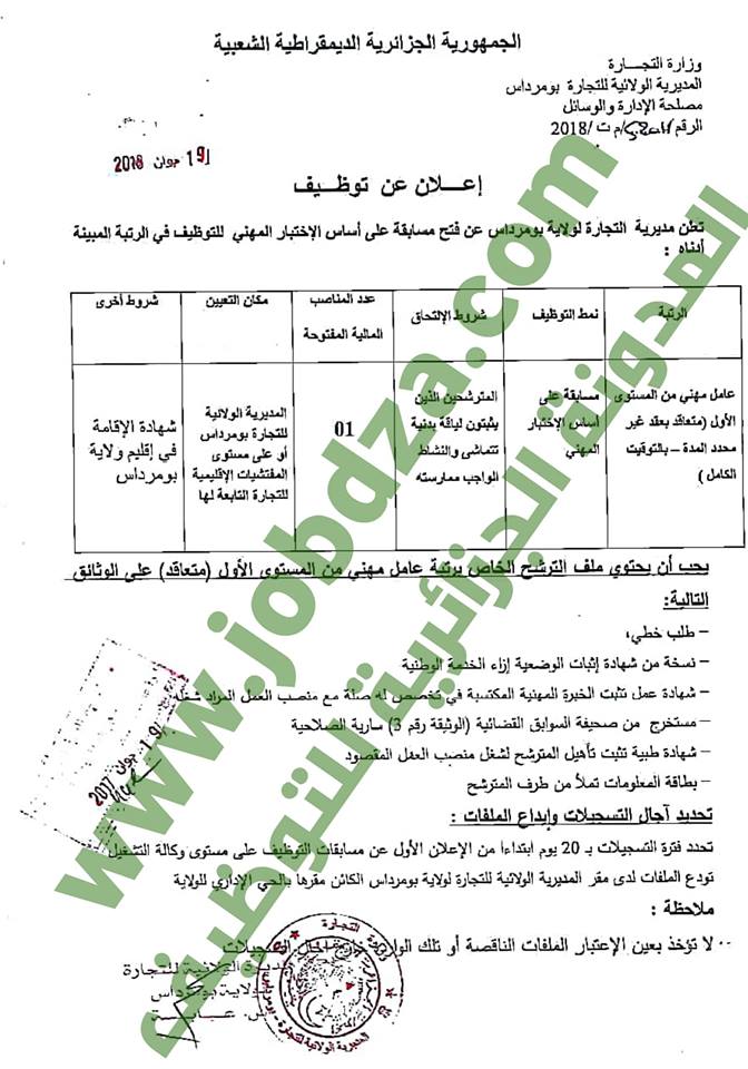 إعلان توظيف في مديرية التجارة بومرداس المدونـــة الجزائريـــــة للتوظيف